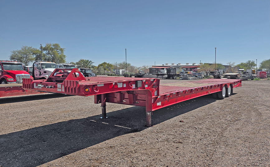 This used Load King HFT70RS hydraulic tail trailer is a heavy-duty equipment hauler built for transporting construction machinery, paving equipment, and other oversized loads. Designed with a 35-ton (70,000 lb) capacity and 50,000 lb concentrated load rating, this trailer offers the strength and durability needed for demanding hauling jobs. Hydraulic folding tail trailers like the HFT series are engineered to simplify loading heavy equipment by lowering the rear section for a smooth loading angle.