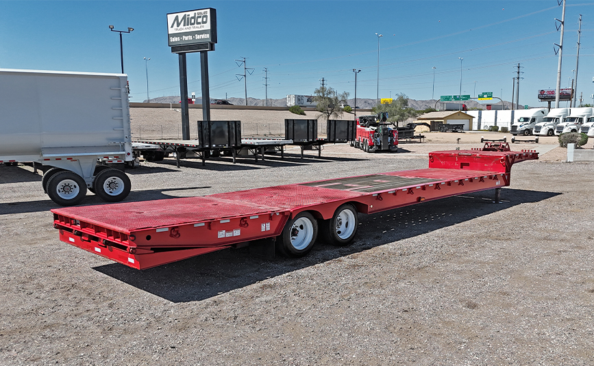This used Load King HFT70RS hydraulic tail trailer is a heavy-duty equipment hauler built for transporting construction machinery, paving equipment, and other oversized loads. Designed with a 35-ton (70,000 lb) capacity and 50,000 lb concentrated load rating, this trailer offers the strength and durability needed for demanding hauling jobs. Hydraulic folding tail trailers like the HFT series are engineered to simplify loading heavy equipment by lowering the rear section for a smooth loading angle.