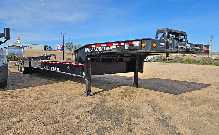 Finally, with aluminum wheels, 235/75R 17.5 tires, and an 18-inch king pin setting, this used Landoll traveling tail trailer is ready to go to work hauling construction equipment, pavers, rollers, and other heavy machinery. As a result, it’s an excellent choice for contractors and fleet operators looking for a reliable, job-proven low-profile hauling solution. Midco Sales is the Landoll trailer dealer in Arizona.