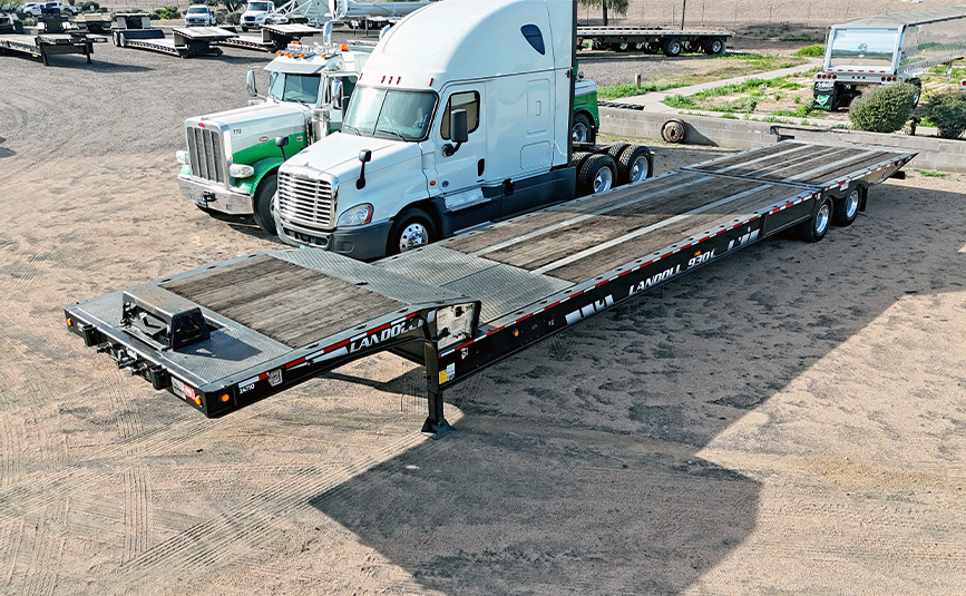 This used Landoll 930 traveling tail trailer is a proven solution for hauling heavy equipment efficiently and safely. Because it features a full 51-foot deck and 102-inch width, it offers the space and stability operators need for demanding transport jobs. Additionally, the rugged Apitong wood deck provides excellent durability and traction for tracked and wheeled machines alike.