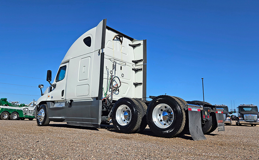 The truck features a 6x4 drivetrain, air brakes, and aluminum wheels and new 295/75R22.5 tires. It’s equipped with an air slide fifth wheel, collision mitigation system, and full lower fairings to improve aerodynamics and safety.